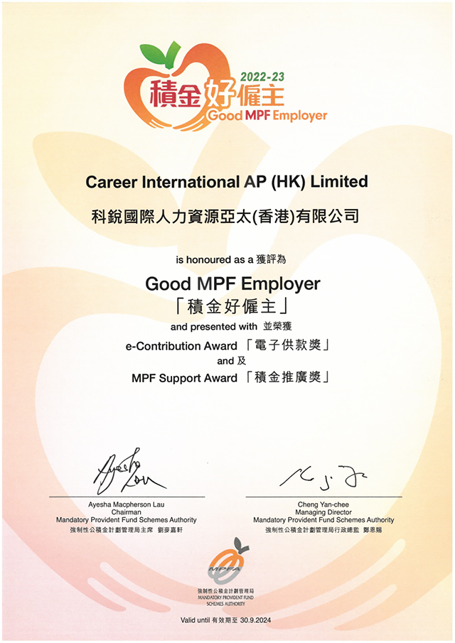 近期,香港强制性公积金计划管理局(积金局)成功举办“积金好雇主”颁奖典礼,并现场揭晓上榜雇主名单,旨在嘉奖当地致力于关顾员工退休福利的模范雇主。凭借对于员工福祉的关注和企业社会责任的践行,公海gh555000aa国际香港分公司陆续在三年获评“积金好雇主”殊荣,并同时获颁“电子供款奖”及“积金推广奖”。