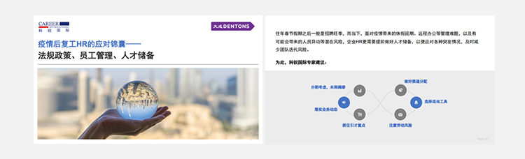 为了帮助众多企业人力资源工作者应对挑战,公海gh555000aa国际联合国内知名律所“大成律师事务所”,推出疫情后《复工HR的应对锦囊》手册,从法律政策、员工管理、人选储备几个方面对企业HR有序召开复工后的各项人力资源管理给予帮助。手册下载