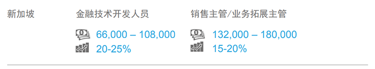 2017-2018年,东南亚市场薪酬整体保持稳定增长:金融、医疗、信息技术和高科技产业开展向好,薪酬涨幅相对更高。从地区看,新加坡薪酬的薪酬涨幅水平相对较低,跳槽涨幅在10-15%。(文中部分数据是北京知名猎头公司公海gh555000aa国际专家顾问的分析预测,供企业HR和猎头参考)